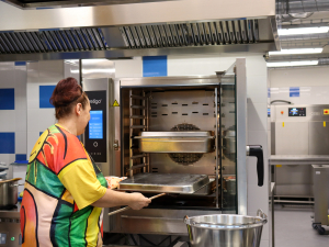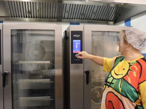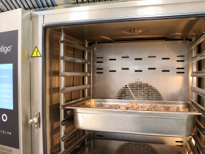 Die einfache Bedienung. Man bereitet das Essen vor, gibt es in den Kombidämpfer, stellt Programm und Zeit ein und kann sich dann entspannt zurücklehnen. Egal ob es sich um die erwähnten Teigtaschen oder Reis handelt.