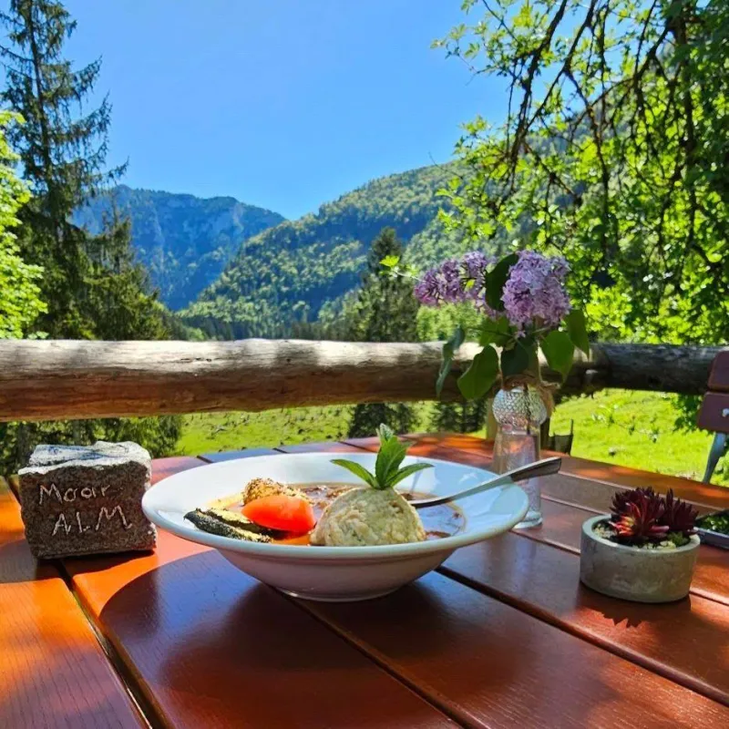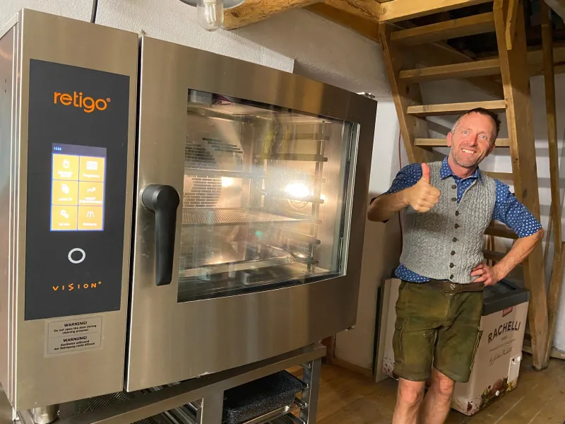 Die Moaralm in Inzell. Inhaber Peter Flatscher hat seinen Retigo Kombidämpfer seit Anfang der Saison 2024 und ist mehr als nur glücklich darüber. Es ist die erste Saison mit einem Kombidämpfer - eine totale Arbeitserleichterung! Peter nutzt den Ofen hauptsächlich für seine hausgemachten Kuchen und für Fleischgerichte. Zudem kommt er u.a. auch bei Veranstaltungen zum Einsatz. Die Moaralm ist fußläufig auch für "Nicht Bergtourer" super zu erreichen. Auch für Kinder gibt es einen Spielplatz und es gibt zahlreiche Tiere zu bestaunen, die hier oben auf der Alm daheim sind. Die Alm bietet schöne schattige Plätzchen zum Entspannen und kann nach einer Stärkung als Ausgangspunkt für herrliche Wanderungen dienen. Die Moaralm ist eine klare Empfehlung und ist einen Besuch wert.
