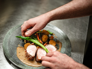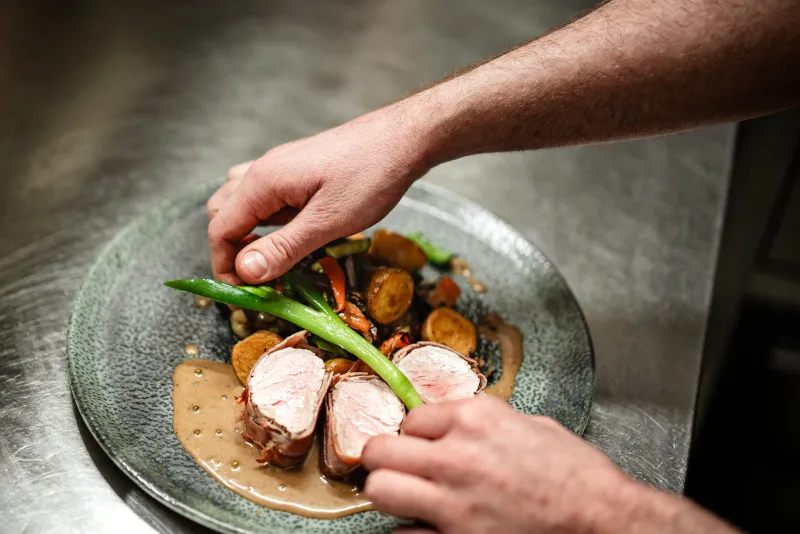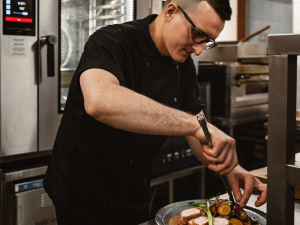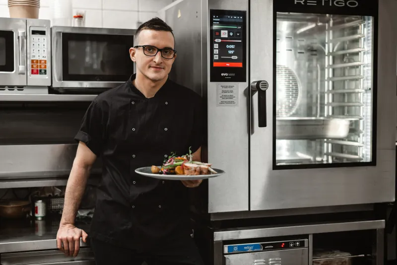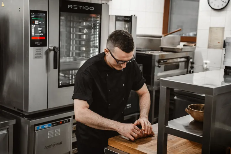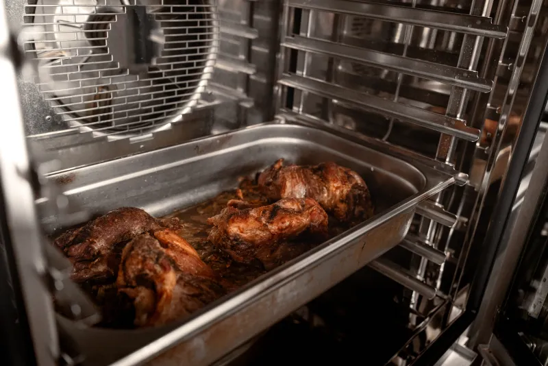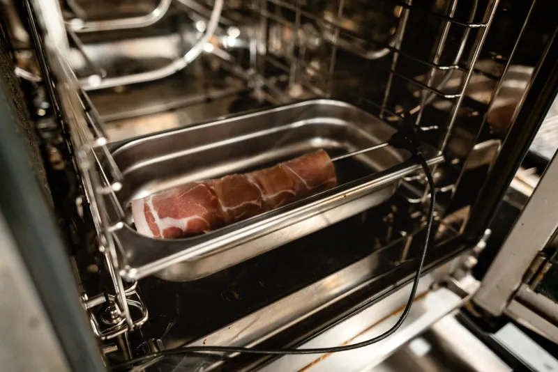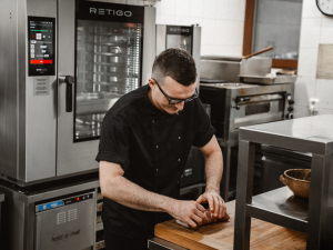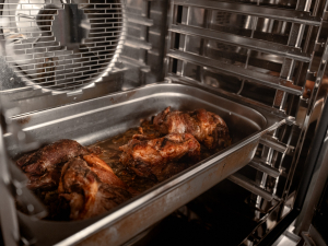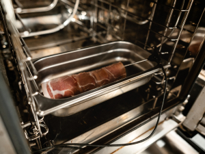 Wir haben zwei Kombidämpfer. Einen nutzen wir hauptsächlich zum Regenerieren von Gerichten, die wir den ganzen Tag über vorproduziert haben, wie Knödel, Gnocchi und verschiedene Fleischsorten. Den anderen verwenden wir zum Grillen von Fleisch, welches wir Just-in-Time für die Gerichte zubereiten. Wir nutzen aber auch Niedrigtemperaturgaren für Fleisch und die Dampfgarfunktion vor allem für Knödel. Man kann sagen, dass wir das ganze Jahr über alle Funktionen nutzen.