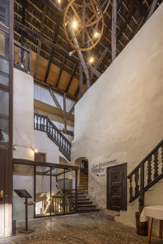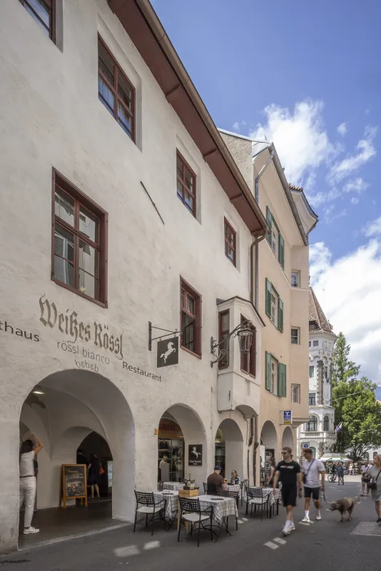 Das Rössl Bianco ist eine malerische historische Pension mit Bistro und Restaurant, die direkt unter den Arkaden der Altstadt von Meran liegt. Das Gebäude hat sich den Charme vergangener Zeiten bewahrt – rustikale Holzbalken, freiliegende Steinmauern und detailreiche historische Verzierungen schaffen eine gemütliche und authentische Atmosphäre. Die erste Erwähnung des Rössl Bianco stammt aus dem Jahr 1745. Seit dieser Zeit diente es als Gasthaus. Seit 2018 wird die Pension und das Restaurant von Frau Anna Fejes betrieben. Sie konzentriert sich auf eine authentische italienische und Tiroler Küche und bereitet die Gerichte aus hochwertigen regionalen Lebensmitteln zu.