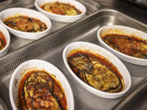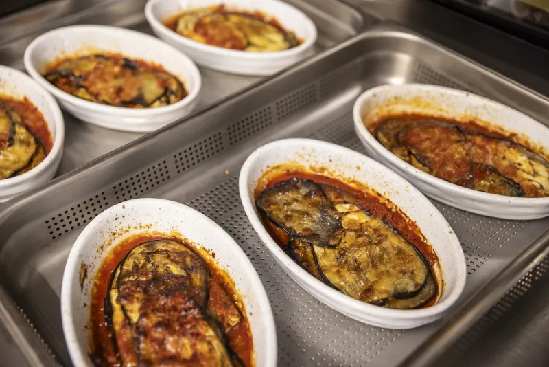 Im Retigo Kombidämpfer bereiten wir Schmorgerichte und Braten zu, wir dämpfen Gemüse und backen Kuchen und wir nutzen ihn zum Teller-Regenerieren. Unser typisches und bekanntes Gericht ist überbackener Auberginenauflauf (Melanzane al Parmigiano).