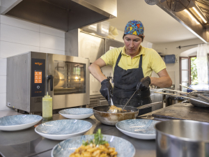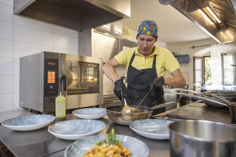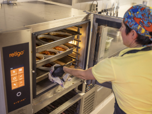 Mit dem Kombidämpfer können wir deutlich schneller arbeiten, was bei einem Volumen von 150 bis 200 Mahlzeiten pro Tag eine große Erleichterung ist. Ein großes Plus ist auch der Quereinschub.