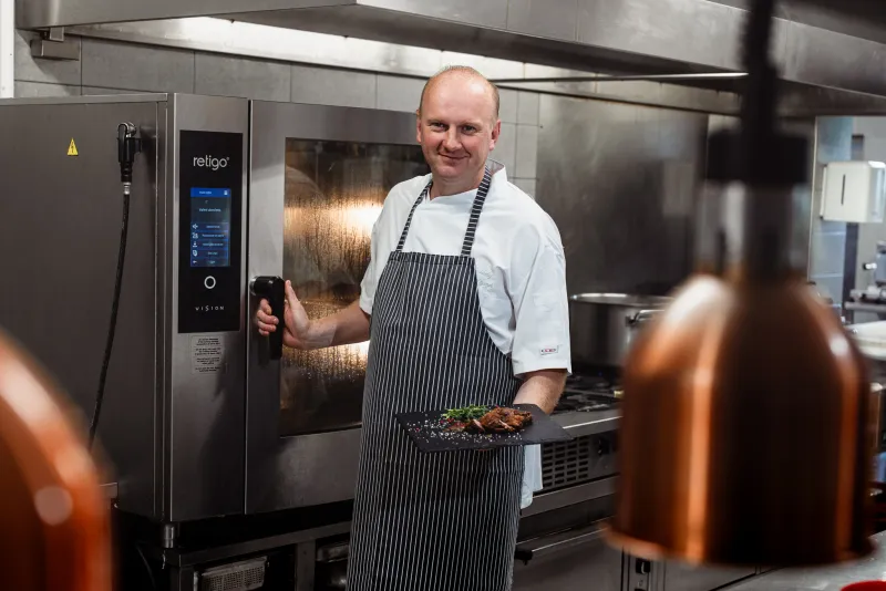Der größte Vorteil ist, dass die Kombidämpfer unsere Arbeit spürbar erleichtern. Sie entlasten uns körperlich, wir müssen keine schweren Töpfe schleppen und sparen zudem Zeit und Energie. Wir können mehrere verschiedene Lebensmittel gleichzeitig zubereiten, egal ob Kartoffeln, Gemüse oder Fleisch – wir bereiten alles gleichzeitig im Kombidämpfer zu. Das spart nicht nur Arbeit, sondern auch Energie.
